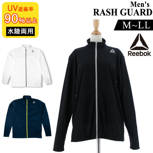 ラッシュガード メンズ 長袖 Reebok リーボック UVカット 90%以上 紫外線対策 ジップアップ 水陸両用 水泳 プール ラフ 普段使い スポーツ ウォーキング フィットネス ロゴマーク ブラック黒 ホワイト白 ネイビー