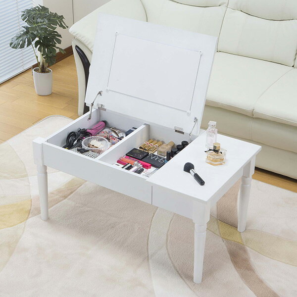 テーブル 幅80cm コスメテーブル ミラー付き コスメ アクセサリー 収納 ドレッサー センターテーブル ( 送料無料 デスク メイク台 化粧台 ローテーブル ドレッサーテーブル ロータイプ メイク 化粧 引き出し ホワイト )【3980円以上送料無料】