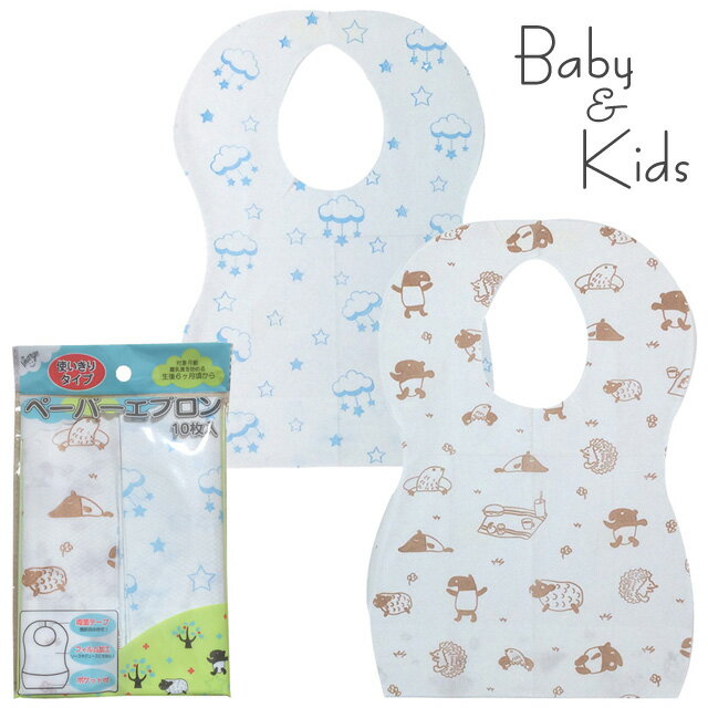 【10枚入り (2柄×各5枚) 】ペーパーエプロン 使い捨て おでかけ 便利 スタイ お食事エプロン