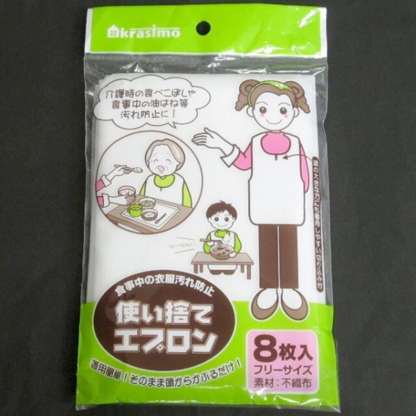 使い捨てエプロン8枚入 フリーサイズ:約72x39cm 材質:不織布