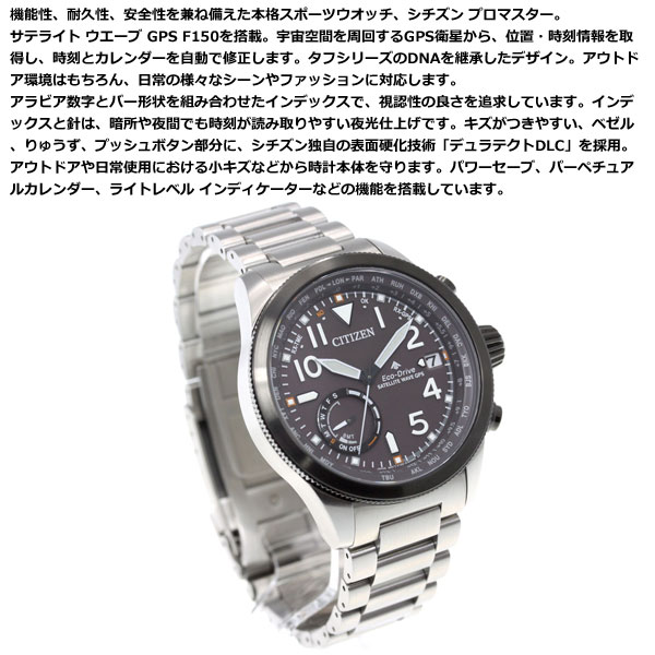商品名シチズン プロマスター ランド CITIZEN PROMASTER LAND エコドライブ GPS衛星電波時計 F150 サテライト ウエーブ ダイレクトフライト 腕時計 メンズ CC3064-86E商品番号CC3064-86Eブランドシチズン プロマスター CITIZEN PROMASTERムーブメントエコ・ドライブGPS衛星電波時計 キャリバー:F150精度:平均月差±5秒(非受信時)光発電:フル充電時約7年可動(パワーセーブ作動時)デイ&デイト表示パーペチュアルカレンダー衛星電波受信機能位置情報取得機能ワールドタイム機能(27都市を含む40時差)サマータイム機能衝撃検知機能針自動補正機能ライトレベル インディケーター充電量表示機能充電警告機能過充電防止機能過放電検出機能充電禁止温度検出機能パワーセーブ機能20気圧防水耐磁1種夜光(針+インデックス)ねじロックりゅうず風防素材サファイアガラス(無反射コーティング)ケース素材ステンレス(一部DLC)デュラテクトケースサイズ44.3×44.3mmケース厚14.3mmバンド素材ステンレスバンド留金タイプ三つ折れプッシュバンド幅22mm文字盤カラーブラック保証期間メーカー1年間保証付属取扱説明書 / 保証書 / 専用BOXその他のサービスサイズ調整無料 / ギフトラッピング無料 シチズン プロマスター ランド CITIZEN PROMASTER LAND エコドライブ GPS衛星電波時計F150 サテライト ウエーブ ダイレクトフライト 腕時計 メンズ CC3064-86E 国内正規品 クリックで画像拡大クリックで画像拡大クリックで画像拡大クリックで画像拡大クリックで画像拡大クリックで画像拡大クリックで画像拡大クリックで画像拡大クリックで画像拡大クリックで画像拡大クリックで画像拡大クリックで画像拡大クリックで画像拡大クリックで画像拡大クリックで画像拡大