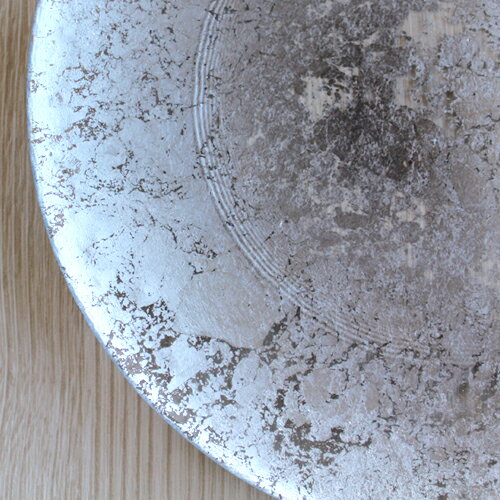 -------------------------------------------------------------- ■ 2個セットトルコで作られた少し厚めのガラスのプレートで、裏側から銀の箔がまぶされたようなデザインは一つ一つ異なる透け感があり、テーブルやトレー、クロスの色でも印象がグッと変わります。
