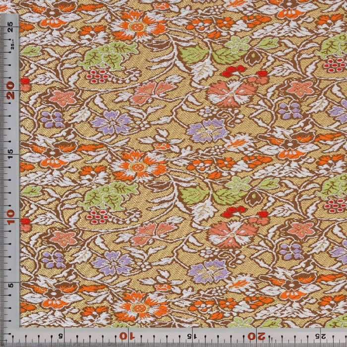 【スーパーSALE】花唐草 早雲寺裂 茶 西陣織 錦裂 正絹 シルク 半巾30cm 長さ10cm単位 和柄生地 布地 はぎれ 端切れ カットクロス 和布 和風生地 和生地